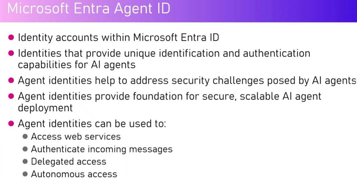 Microsoft Entra Agent ID — это учетная запись идентичности в Microsoft Entra ID, которая предоставляет AI-агентам уникальные возможности идентификации и аутентификации. Он играет ключевую роль в обеспечении безопасности, масштабируемости и управляемости AI-агентов в экосистеме Microsoft.