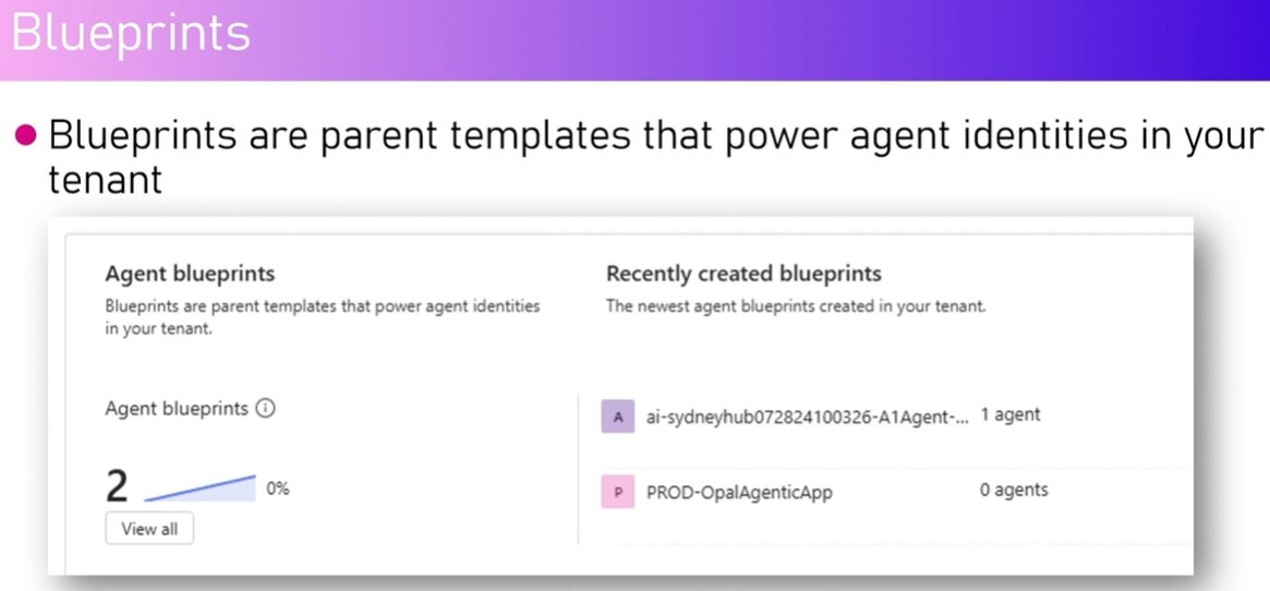 Идентичности агентов создаются на основе blueprint’ов. Blueprint — это родительский шаблон, который лежит в основе агентных идентичностей в рамках тенанта. Каждый созданный агент имеет агентную идентичность, а сама идентичность формируется из blueprint’а.